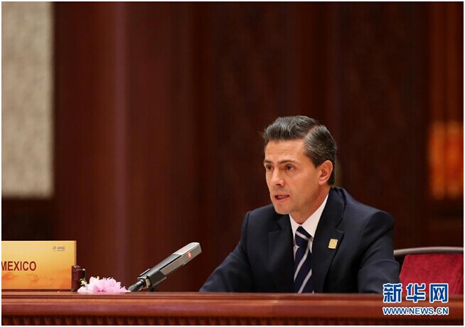 On November 11, the President of Mexico Pena made a speech at the 22nd APEC Leaders’ Unofficial Meeting.